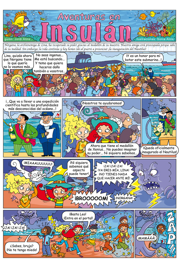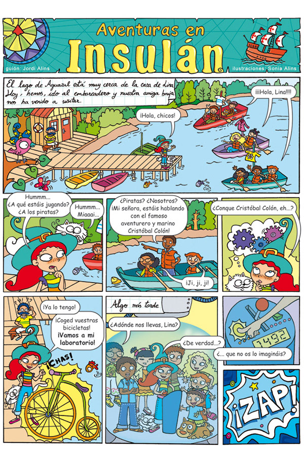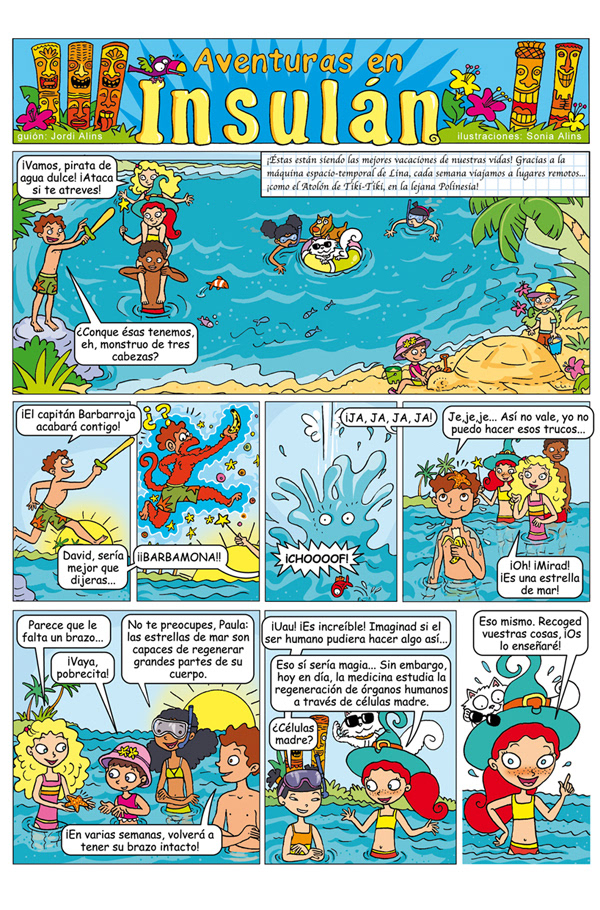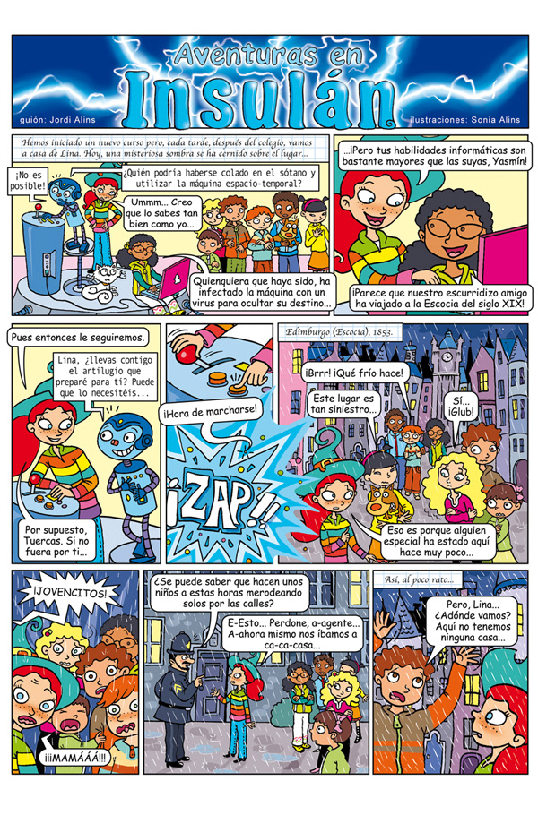 Covers and pages from the three volumes of "Aventuras en Insulán". With scripts of Jordi Alins. Diabetes magazine (Sociedad Española de Diabetes). 2008. Cubiertas y páginas de interior de "Aventuras en Insulán". Con guiones de Jordi Alins. Revista Diabetes (Sociedad Española de Diabetes). 2008.