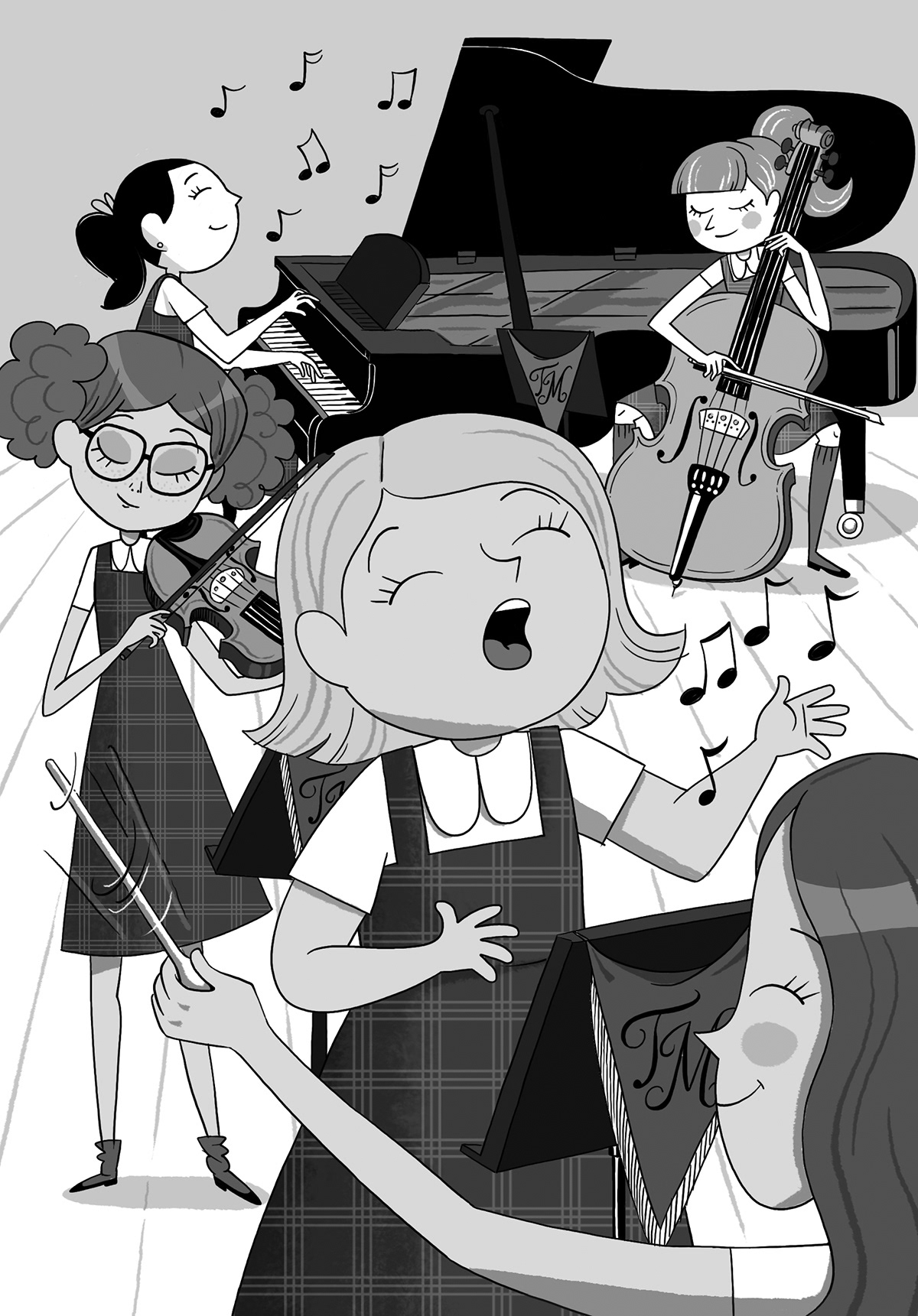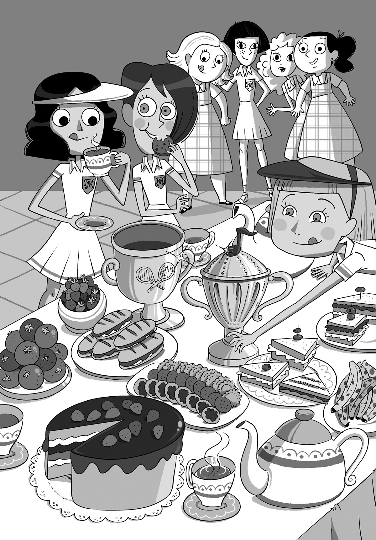 Inside illustrations for 6 new books of the Malory Towers series by Enid Blyton following the style and characters created by Enrique Lorenzo. RBA, 2016.