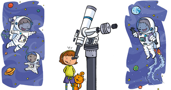 Children's album for the Space Monitoring Centre (COU) of Àger, Lleida. 2010.