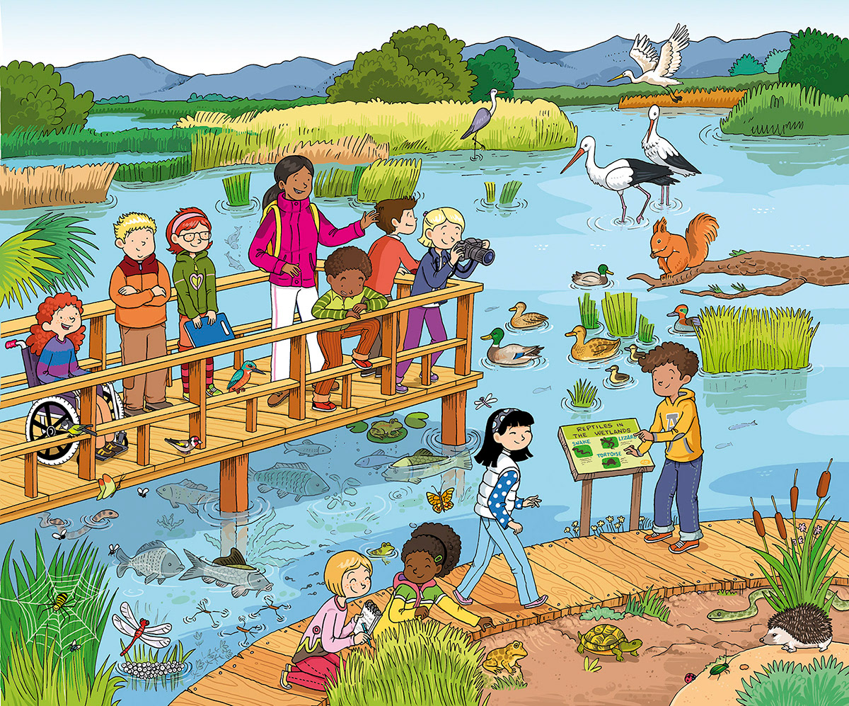 Unit-opening and inside illustrations for primary education science books. Edelvives publishing house, 2018-2022