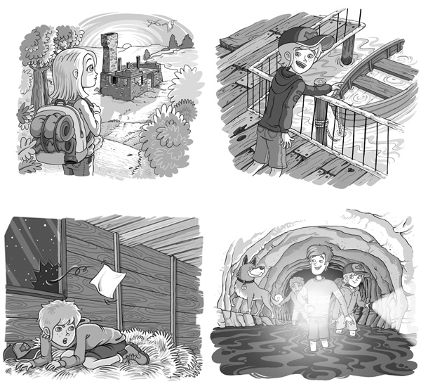 Selection of covers and inside illustrations made for the new Spanish edition of "The Famous Five" collection by Enid Blyton. RBA, 2015.