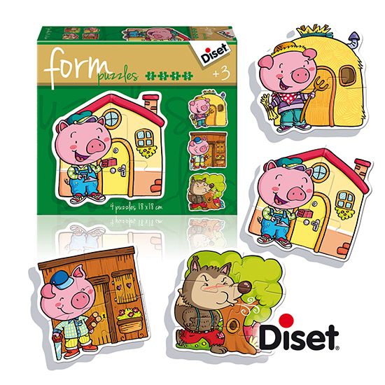 Characters from "The Three Little Pigs" story. Form Puzzles collection for 3-year-old children. Diset, 2015.