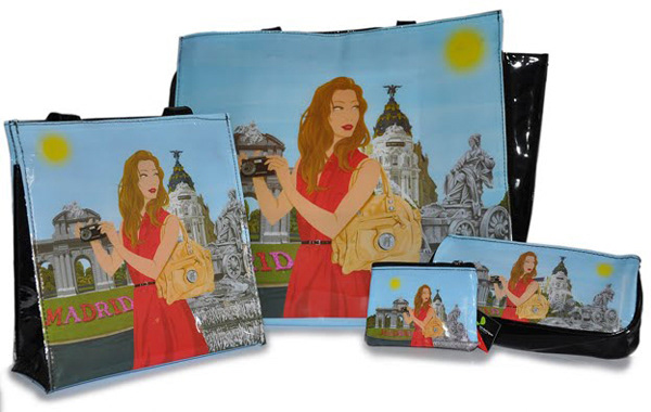 illustrations included in tourist handbag collections for several European capital cities. Escudo de Oro. Barcelona. 2012. Ilustraciones incluidas en colecciones de bolsos de temática turística para diversas capitales europeas. Escudo de Oro. Barcelona. 2012.