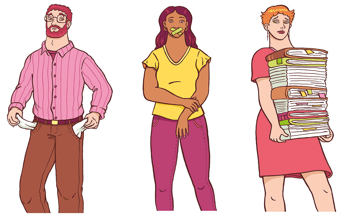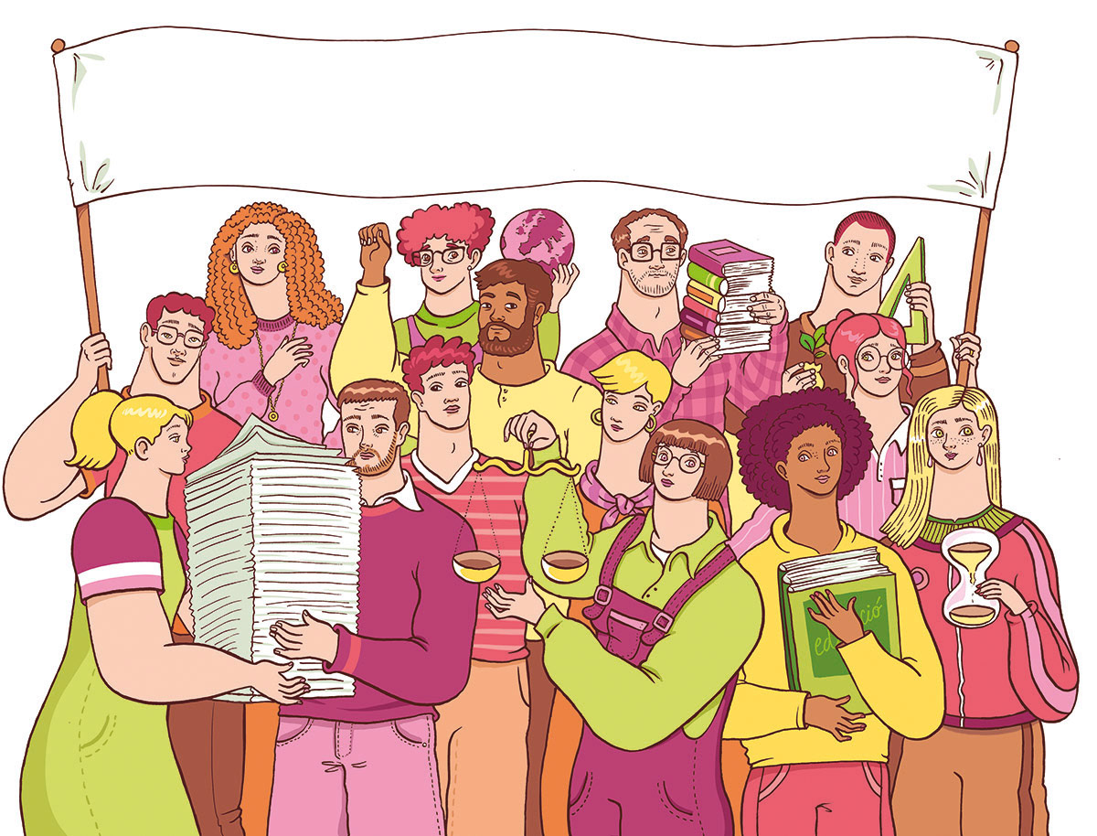 Illustrations created for a corporate campaign that was meant to highlight the main issues related to teaching professionals in Catalonia.